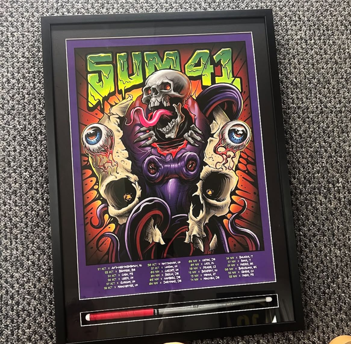 A Pure Evil original painting. Double framed with a thin yellow frame, overlapped by a more traditional frame. See more double framing options in store.